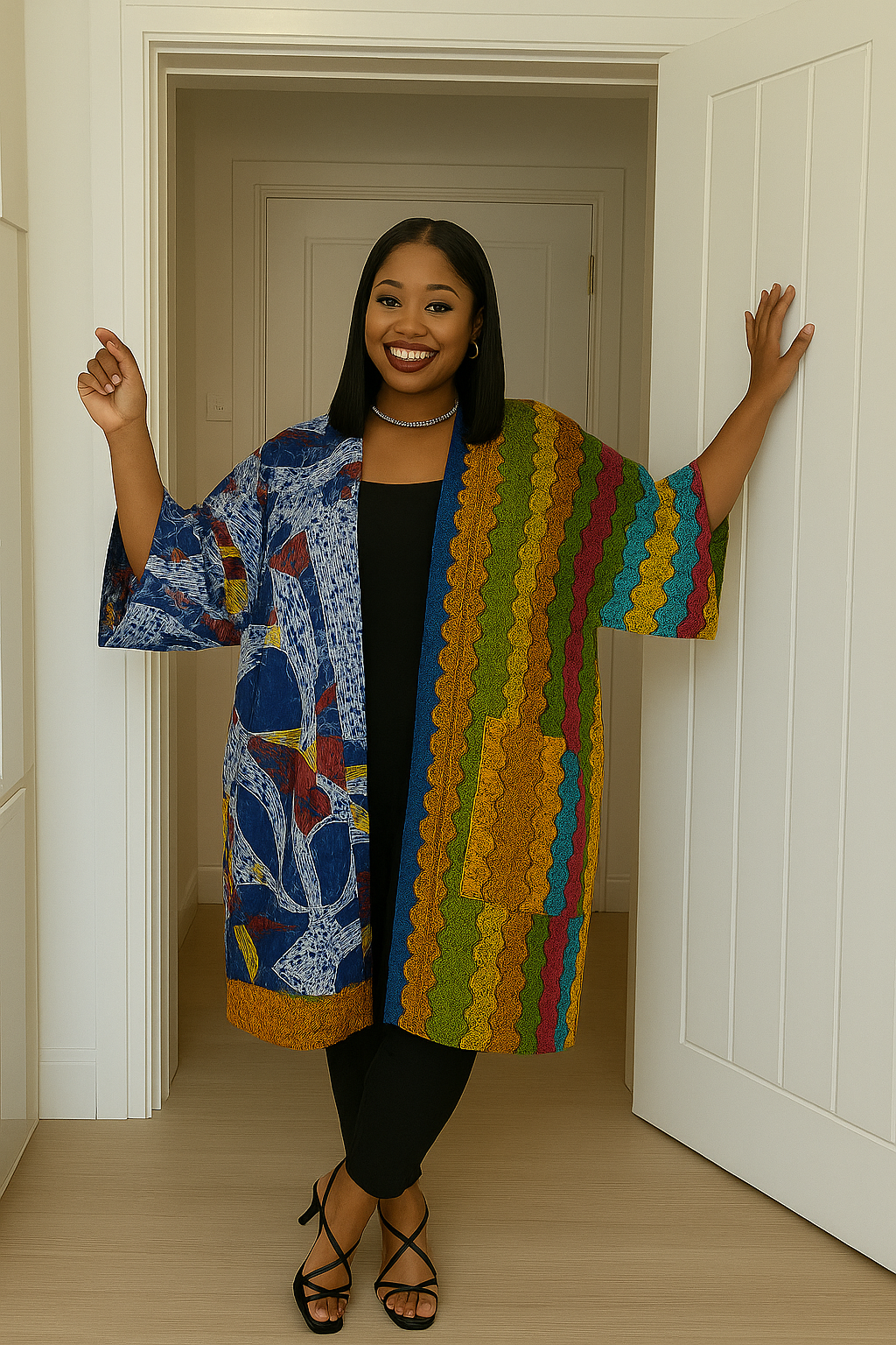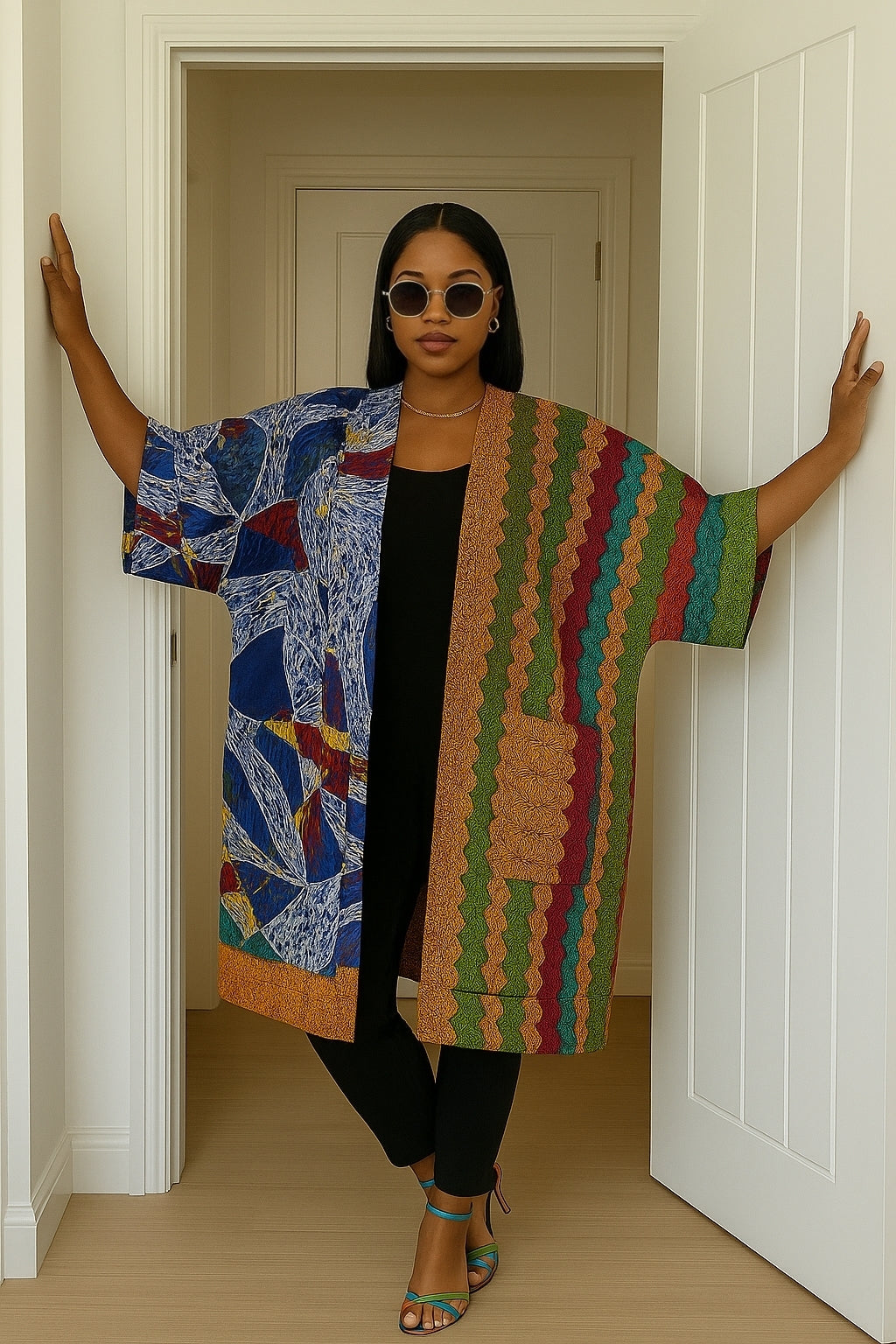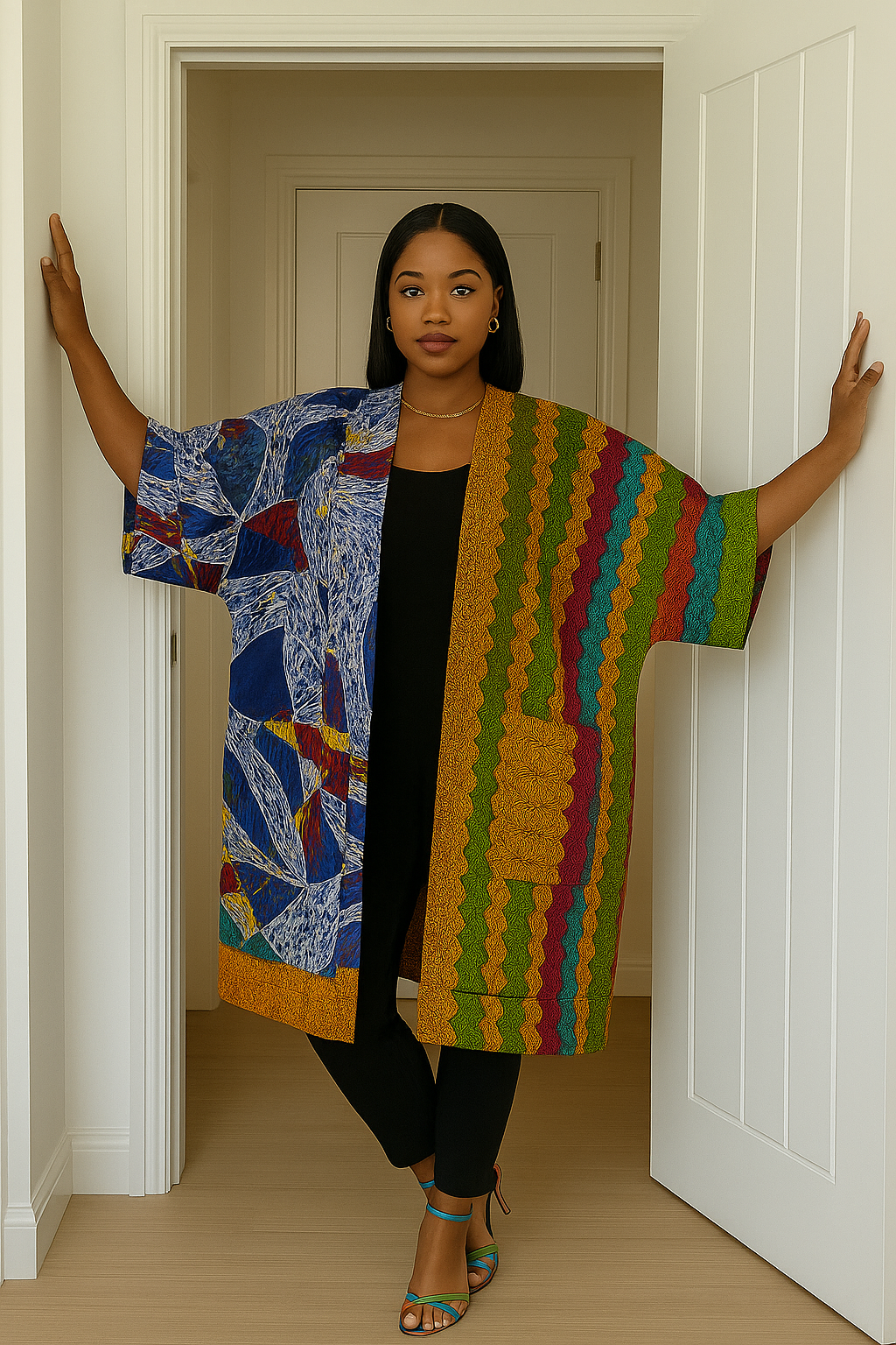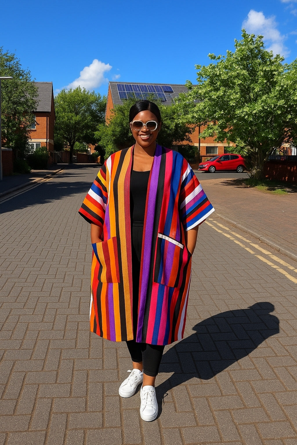 Meet the Anna Kimono Jacket where colour meets confidence. It comes in two designs, stripes and patterned. ✨ One size fits all ✨ Made from premium Ankara cotton