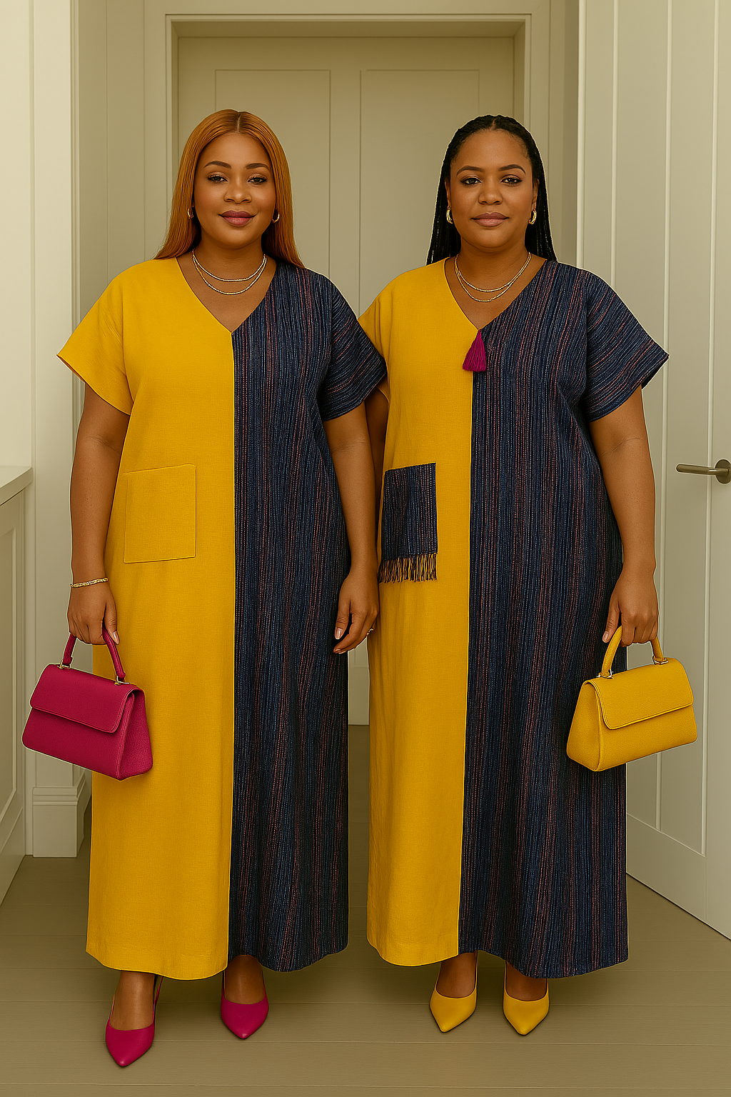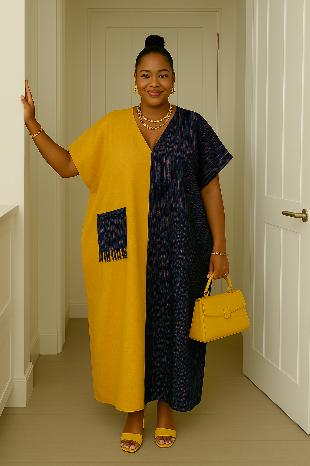 The Abiola Asooke Kaftan is a stunning, free-flowing garment crafted from premium handmade African Asooke fabric.