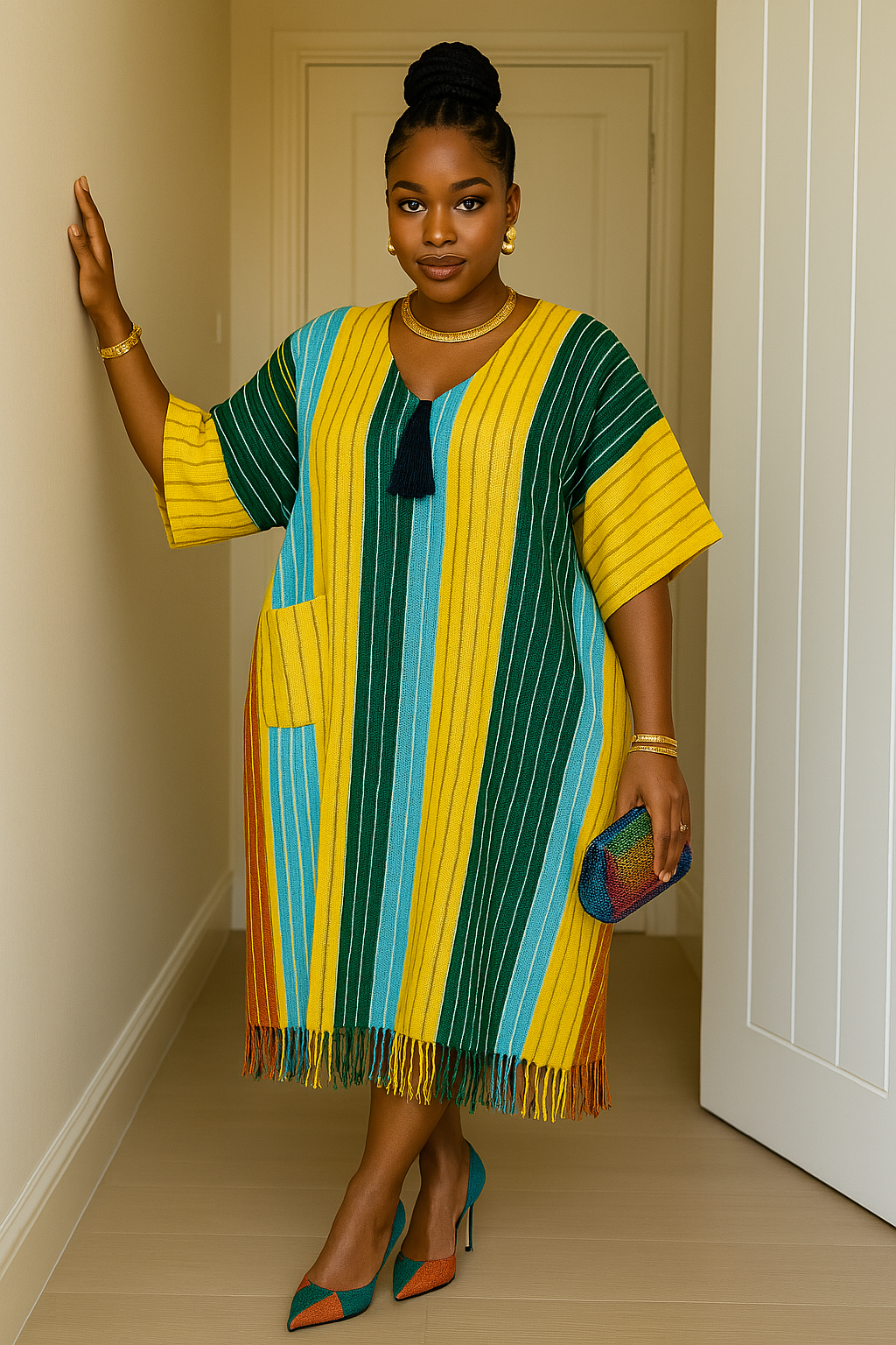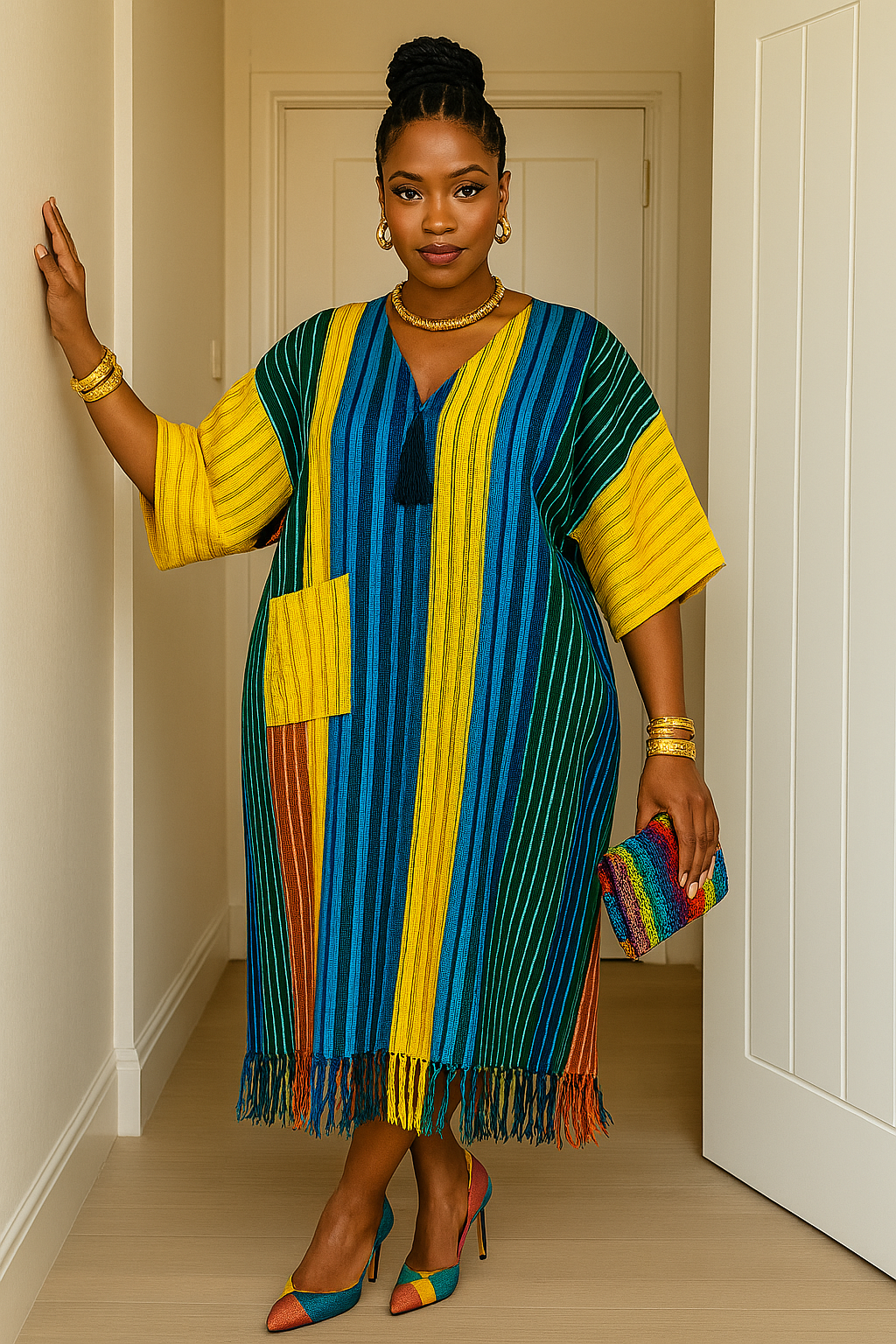 Elevate your style with the Achalugo Multicoloured Asooke Kaftan—a stunning, free-flowing garment handcrafted from premium African Asooke fabric.