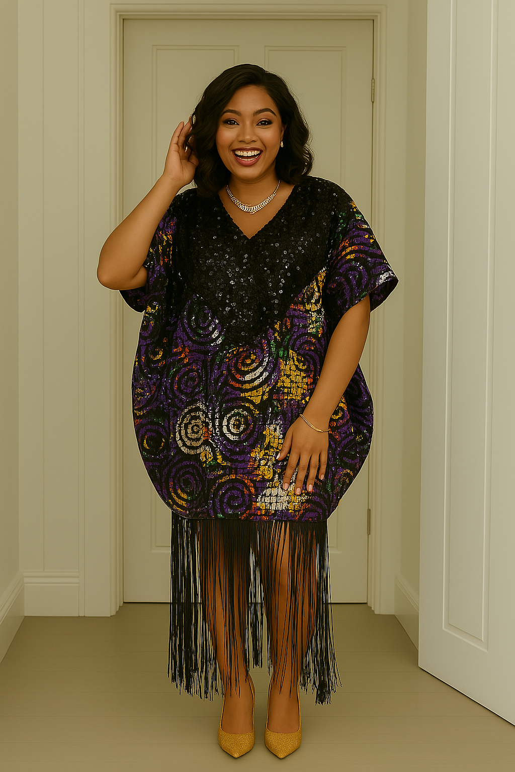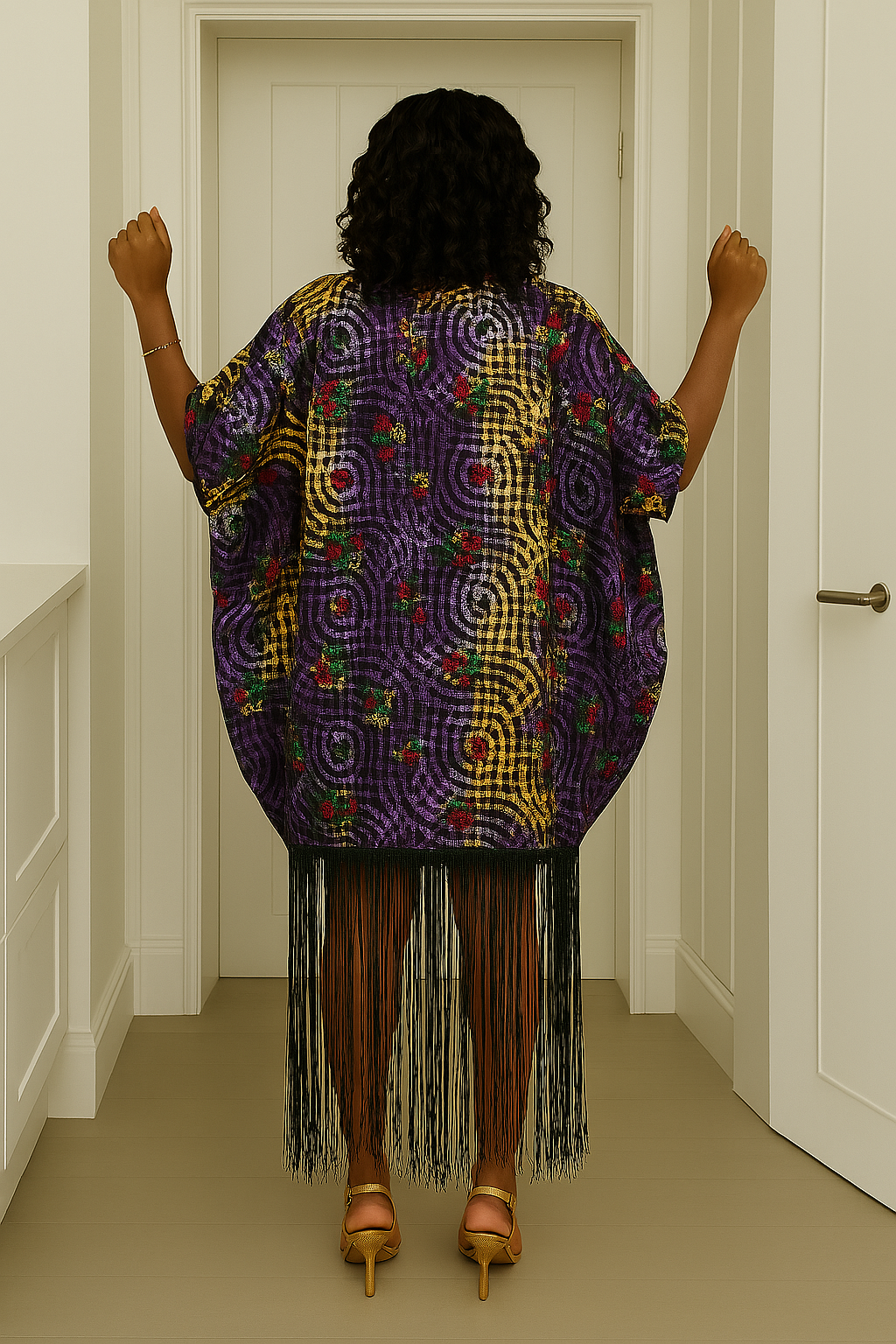 The Fadekemi Adire Brocade Kaftan is a masterpiece of elegance and craftsmanship. This exquisite kaftan features a luxurious combination of Adire patterns on rich brocade fabric, adorned with intricate embellishments and elegant fringe details.