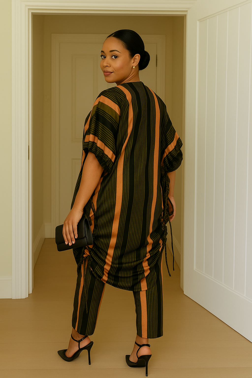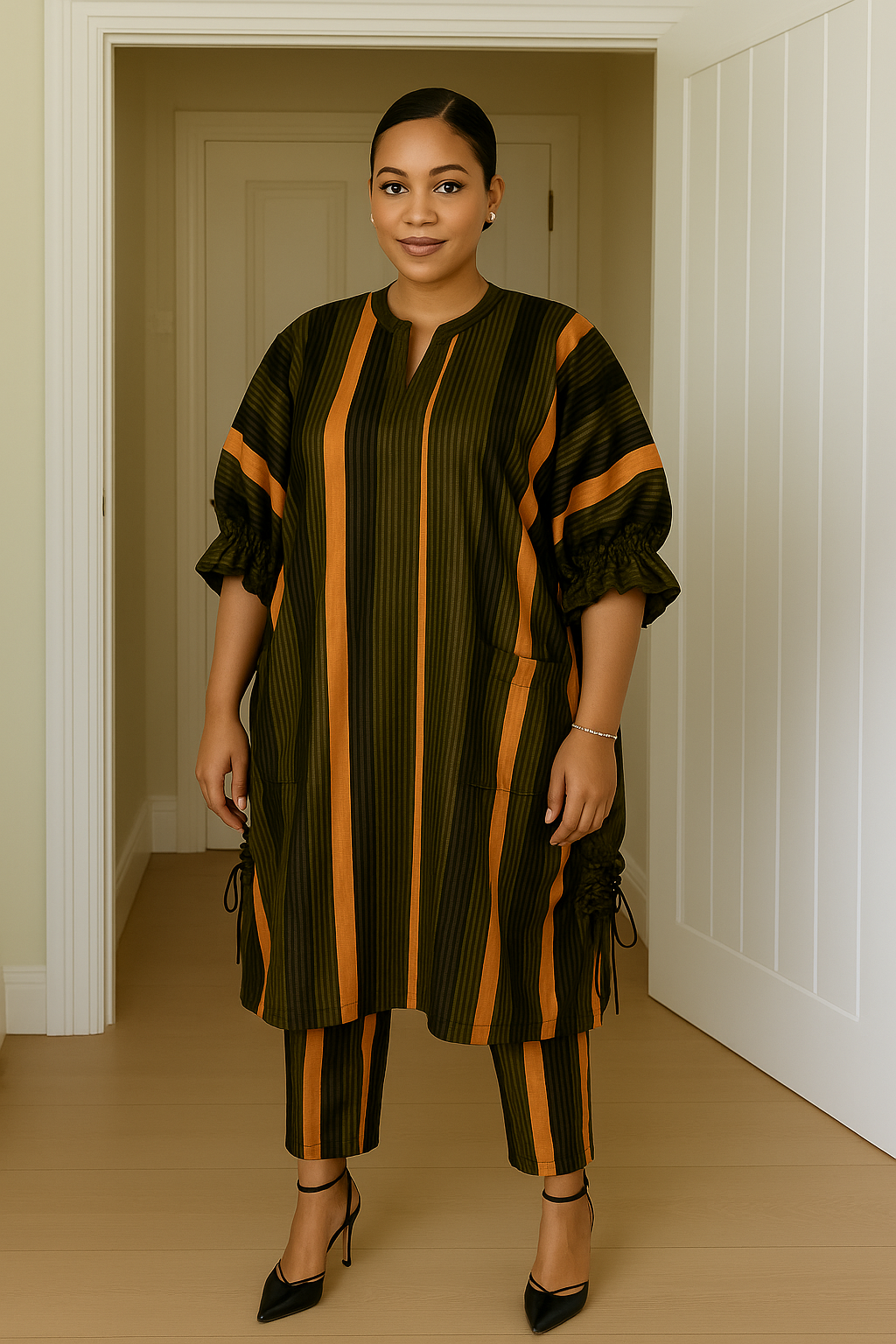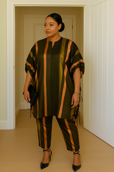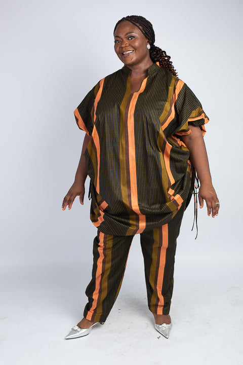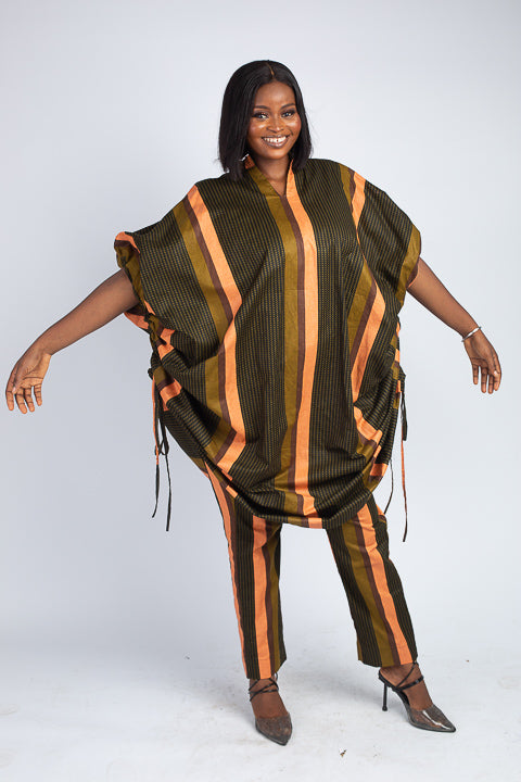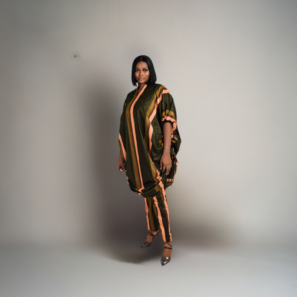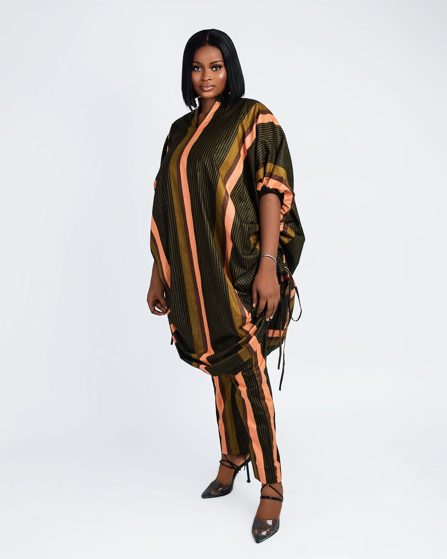 Introducing the Beatrice Versatile Set, crafted from stunning tribal African cotton print. This unique set offers exceptional versatility, allowing you to wear it in at least three ways.